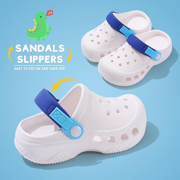 Easy to Wear: These clogs for kids are made of lightweight and durable EVA materials. They are not only sandals but also slippers, adjusting the heel strap to let them be what you want.