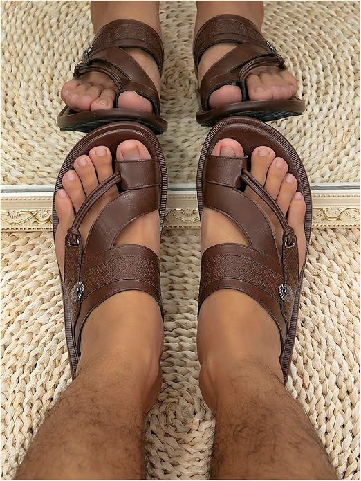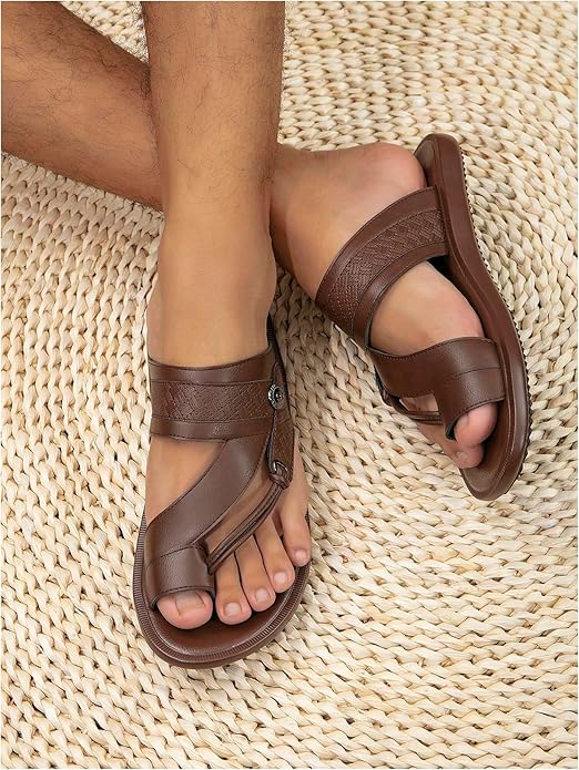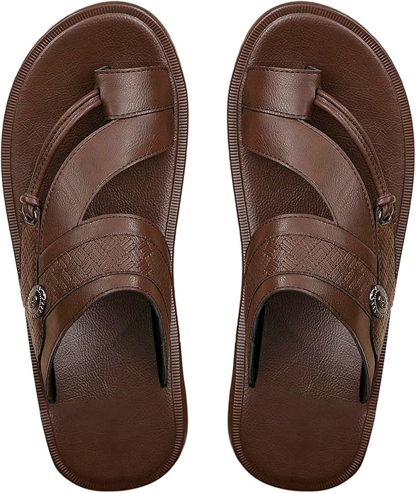Vacation Sandals, Slip on Shoes, Leather Slippers, Open Toe, Solid Color, Toe Ring